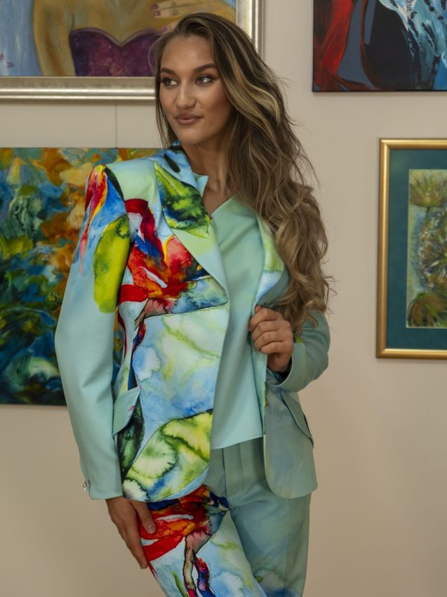 A francia Riviéra színvilágát és eleganciáját idézi meg ez a különleges, klasszikus szabásvonalú női szövetzakó, melyet selyemmel béleltünk és csiszolt üveggombokkal tettünk még exkluzívabbá.